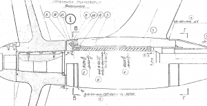 На рисунке в заголовке приведен фрагмент чертежа дейдвудного устройства и ниже — чертеж резинометаллического подшипника для этого проекта: